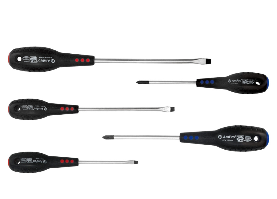 Приобрести T32090 Набор отверток c антискользящей ручкой 5 пред(крест и шлиц) от компании AmPro (Тайвань) из раздела Наборы отверток по цене 1 000 рублей.