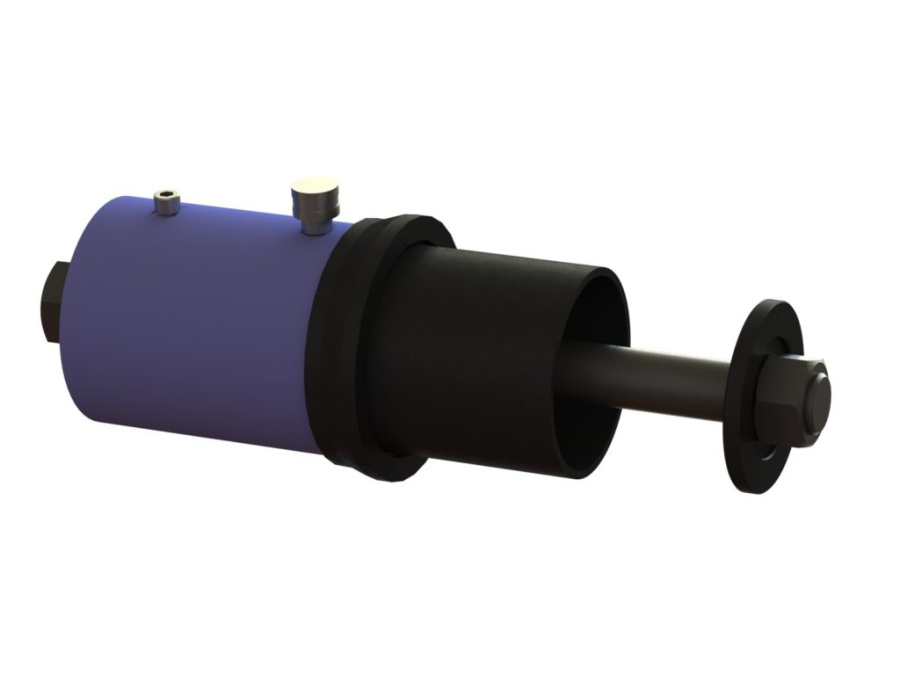 Гидроцилиндр одностороннего действия с двухсторонним полым штоком. Усилие 50т, ход штока 60мм, диаметр штока 70мм, внутр. отв. 43.