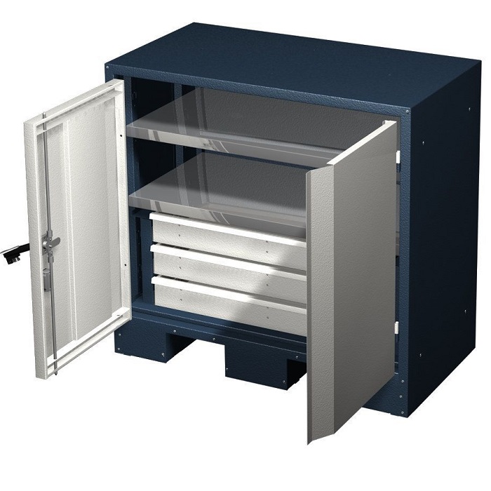 - порошковая покраска RAL 7016; 3000,5015, панель ящиков RAL 7700. Шагрень. (возможны другие сочетания цветов)