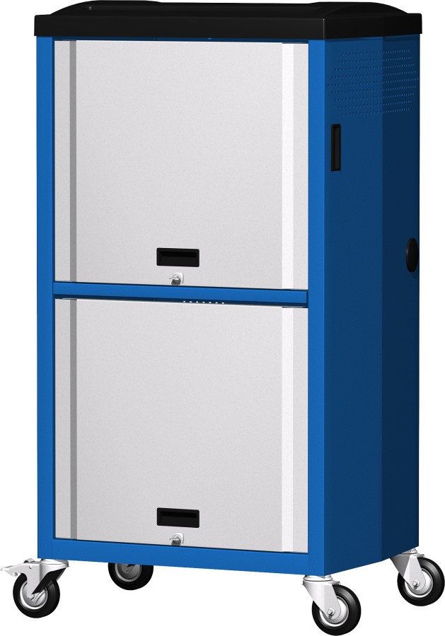 Поверхность стола тележки покрыта бензомаслостойким пластиком с отделением для мелких предметов