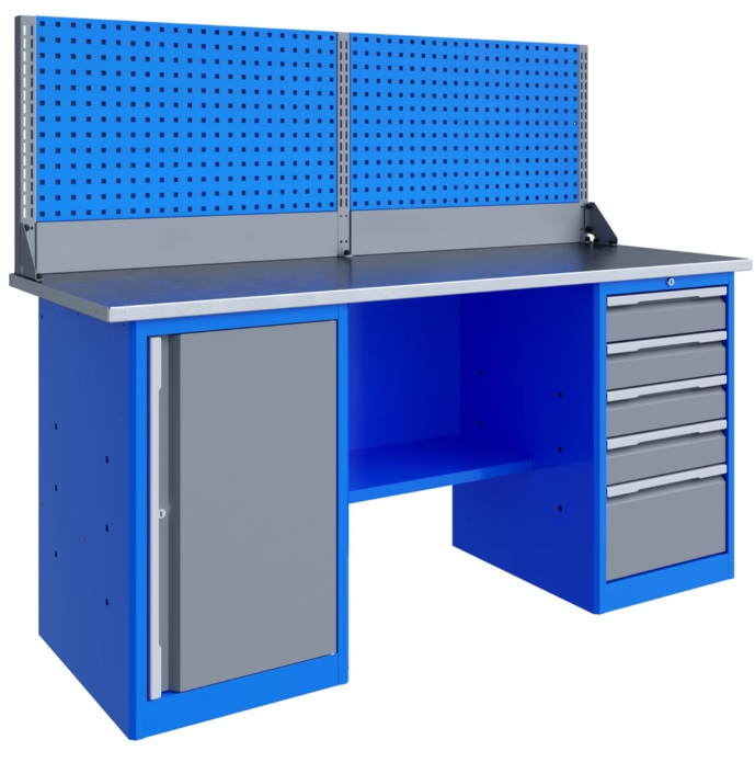 Цвет: корпус - RAL5015 (синий), ящики - RAL7037 (серый), ручки ящиков - RAL9006 (серый).