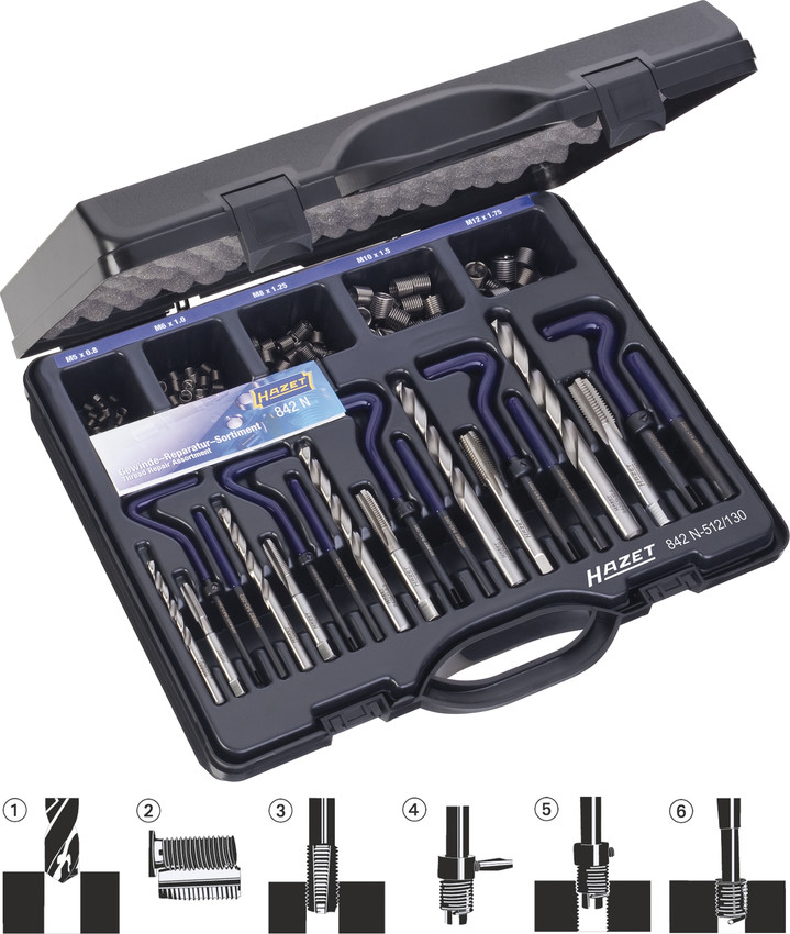 Набор для ремонта и восстановления резьбы Hazet 842N-512/130 купить в Волгограде и других городах России