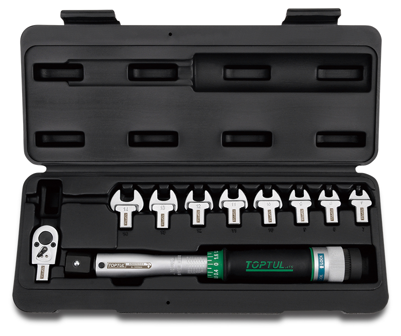 Ключ динамометрический 9x12мм 6-30 Нм с рожковыми насадками 7-14 мм 10 предметов TOPTUL GAAI1001 купить в Волгограде и других городах России