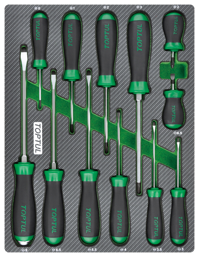 Набор отверток крест и шлиц, 12 пр., в мягком ложементе TOPTUL