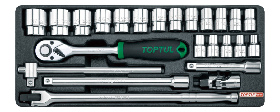 Набор головок и аксессуаров 1/2" 6-32 мм, 24 предмета, в ложементе TOPTUL GCAT2402 купить в Волгограде и других городах России
