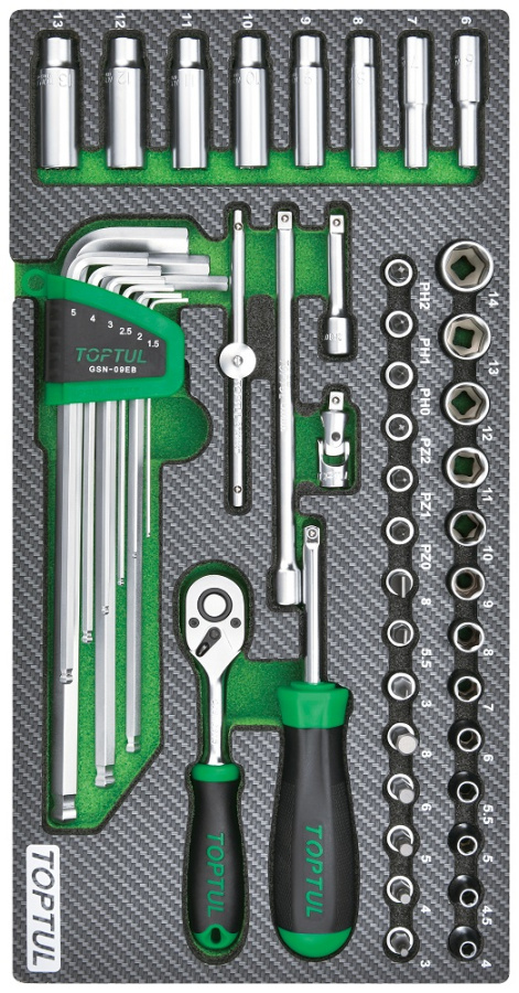 Набор головок и аксессуаров 1/4", 50 пр. в мягком ложементе TOPTUL GEA5004 купить в Волгограде и других городах России