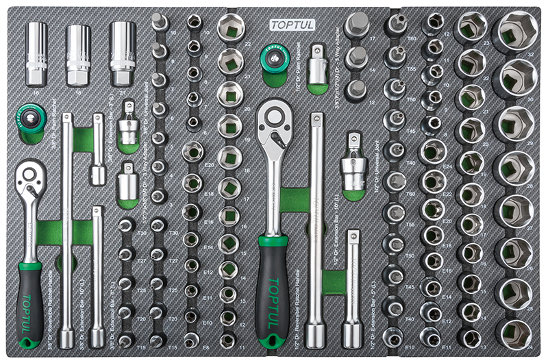 Набор головок и аксессуаров 3/8" и 1/2" 6-гр., 104 предмета в мягком ложементе (D) TOPTUL GEDA429 купить в Волгограде и других городах России