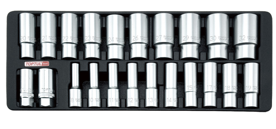Набор головок удлиненных 1/2" 8-32 мм 23 предмета, в ложементе TOPTUL