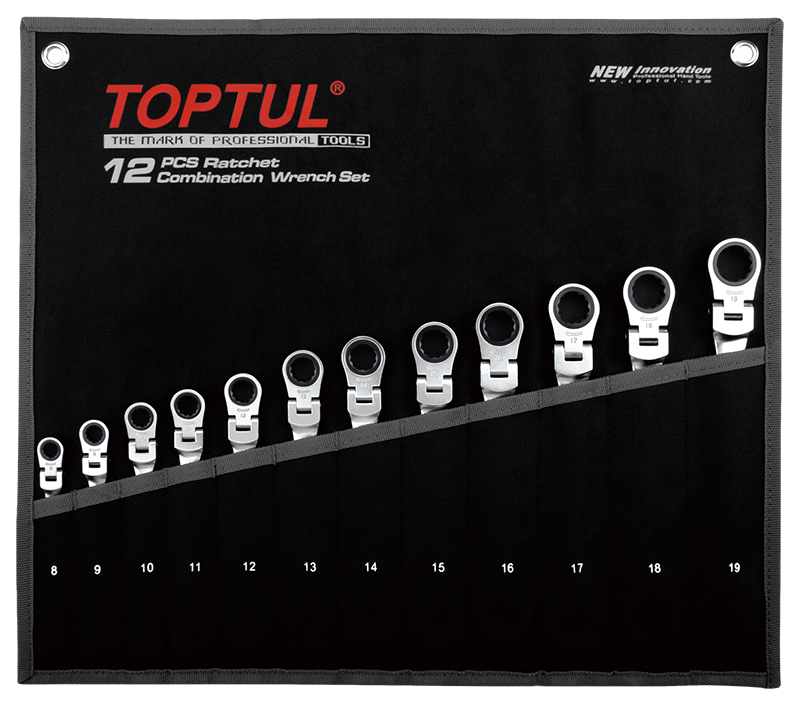 Набор ключей комбинированных трещоточных шарнирных 8-19 мм, 12 предметов на полотне TOPTUL GPAQ1204 купить в Волгограде и других городах России