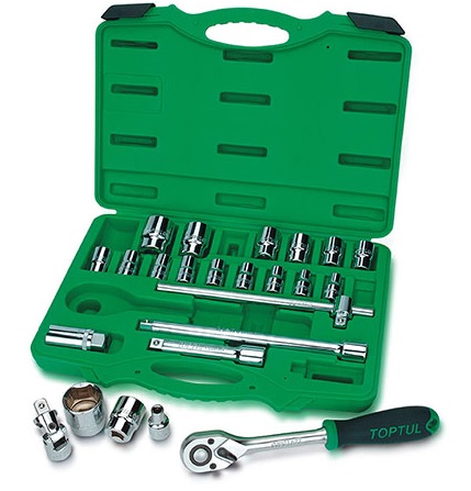 Набор головок и аксессуаров 1/2" 12-гранных 8-32 мм, 24 предмета TOPTUL