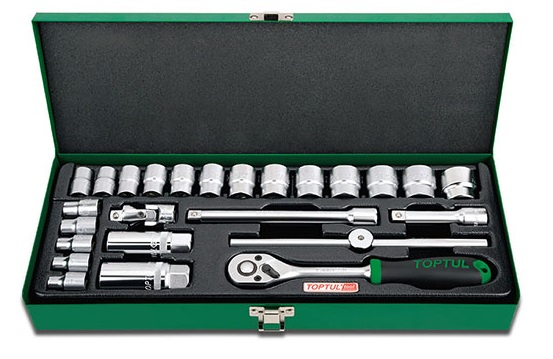Набор головок и аксессуаров 3/8" 12-гранных 6-24 мм, 25 предметов в метал. кейсе TOPTUL GCAD2504 купить в Волгограде и других городах России