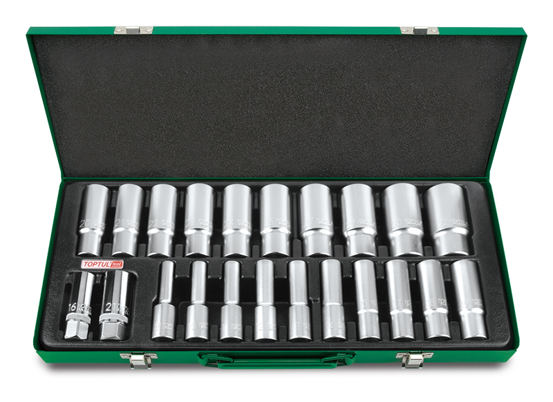 Набор головок удлиненных 1/2" 6-гранных 8-32 мм, 22 предмета в метал. ящике TOPTUL купить в Волгограде и других городах России