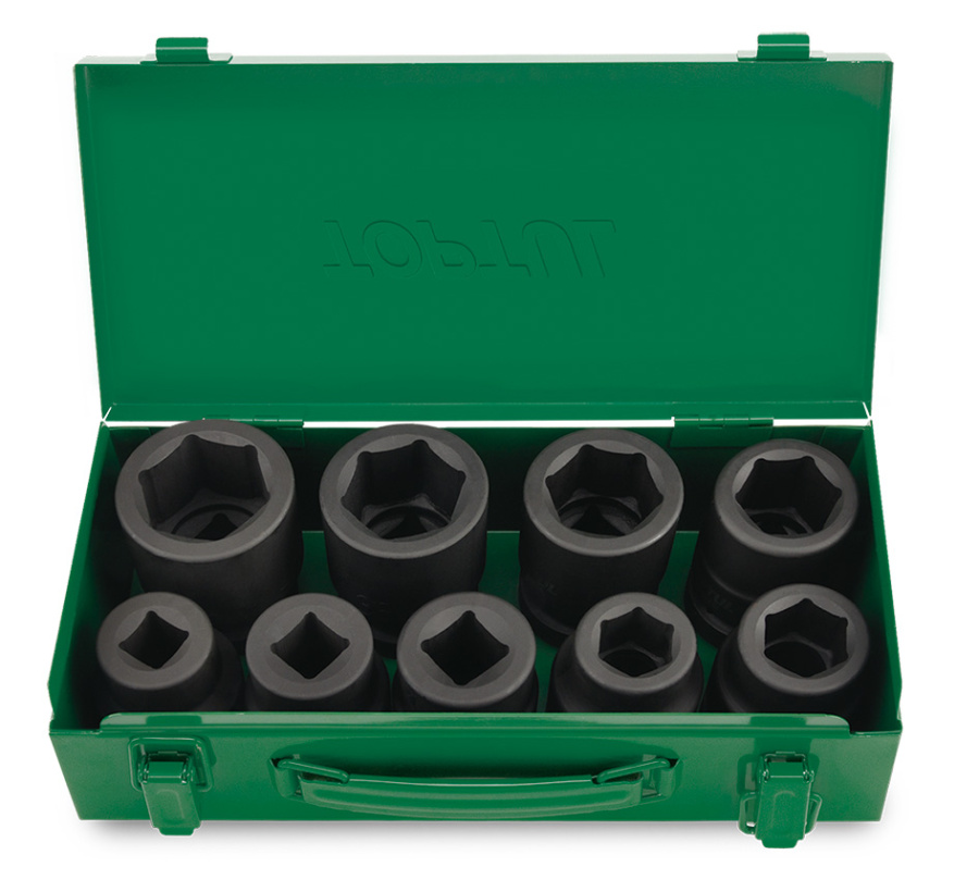 Набор ударных головок 1" 17-41 мм 4 и 6-гранных в металлическом ящике, 9 предметов TOPTUL