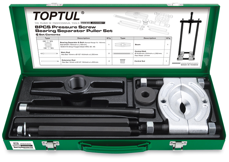 Съемник сепараторного типа 75-105 мм, 8 предметов в метал. кейсеTOPTUL купить в Волгограде и других городах России